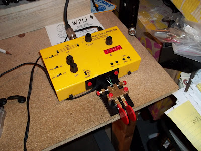 I ended up using the K1 for the entire event; as the first thing I did was to listen on 15 Meters, but found the band to be dead. The K1's autotuner handled the EFHW quite nicely and was able to give me a match with nary a problem. I was able to switch between 20 and 40 Meters quickly and pain free. As I watched the output power scale while transmitting, it was obvious on each band that I was getting a full 5 Watts out with no power being "folded back". Good job, K1 !